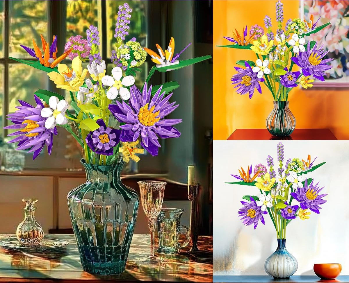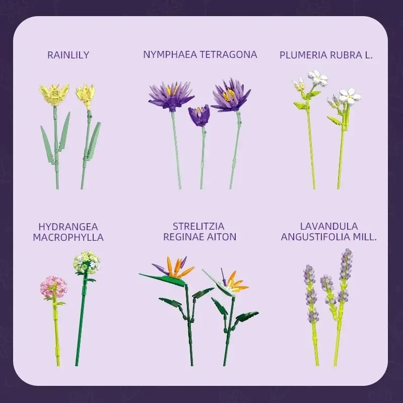 KLOCKI konstrukcyjne KWIATY ZESTAW BUKIET TROPIKALNYCH KWIATÓW 890 el.