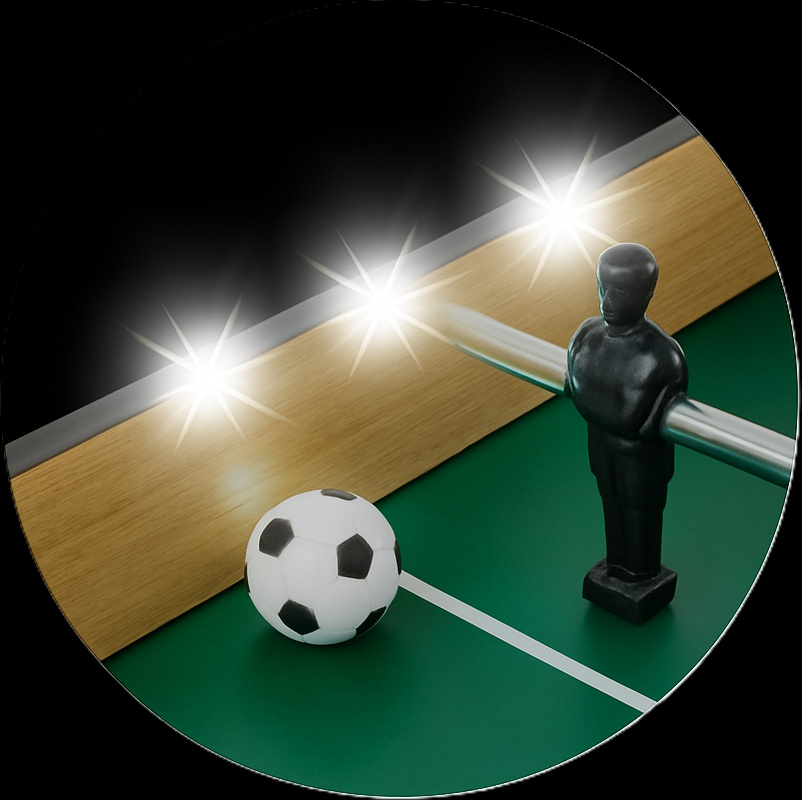 Dzięki oświetleniu LED, mecze można rozgrywać w słabiej oświetlonych pomieszczeniach. Poczuj się jak na stadionie rozświetlonym przez potężne jupitery!