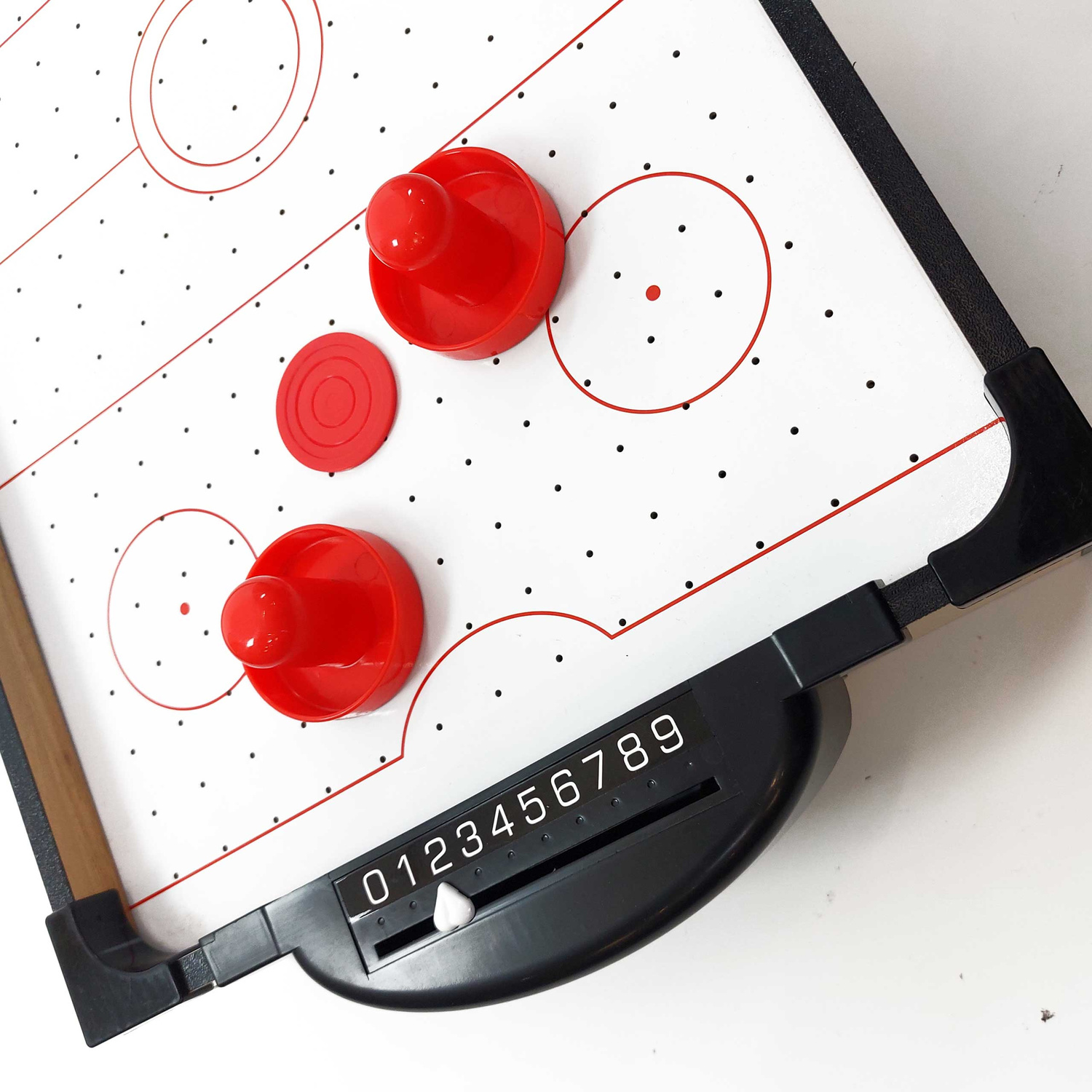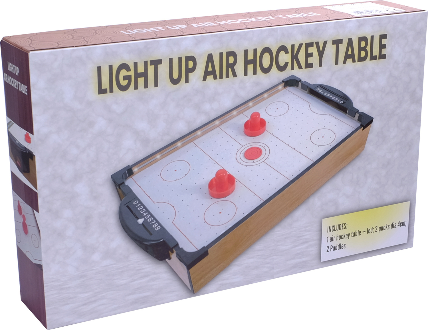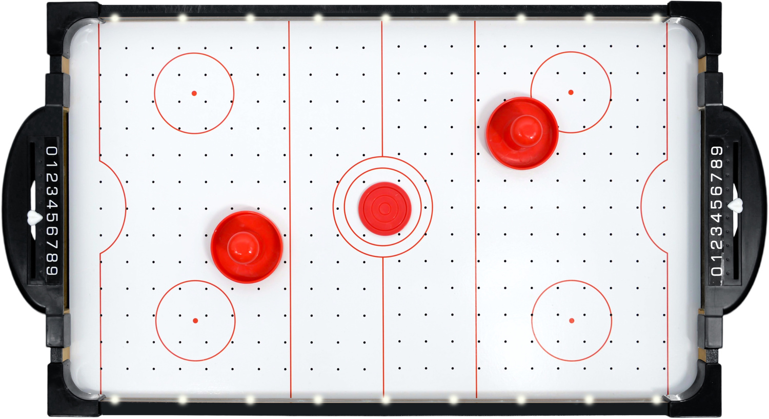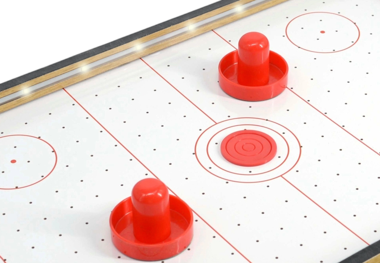 Air hockey to emocjonująca gra na zasadach klasycznego cymbergaja. Jest to dynamiczna i bardzo szybka rozgrywka, która dostarczy wszystkim entuzjastom mnóstwa dobrej i wesołej zabawy. Wciągająca zabawa, trenuje koncentrację i szybkość reakcji małych i dużych graczy.