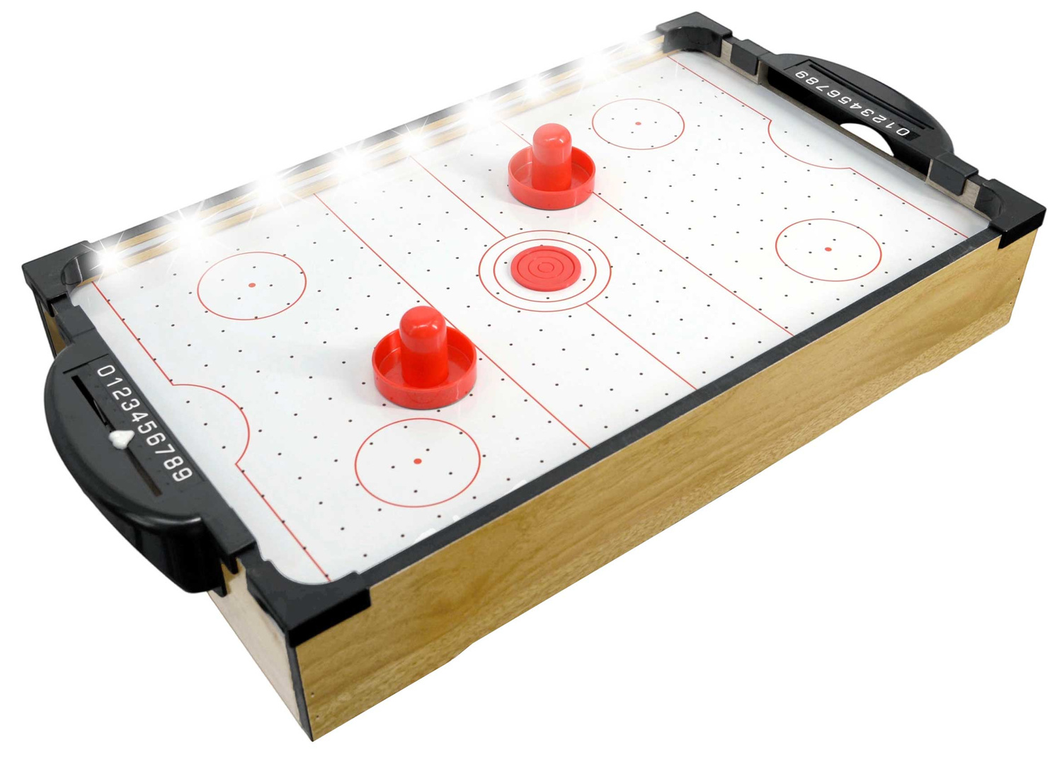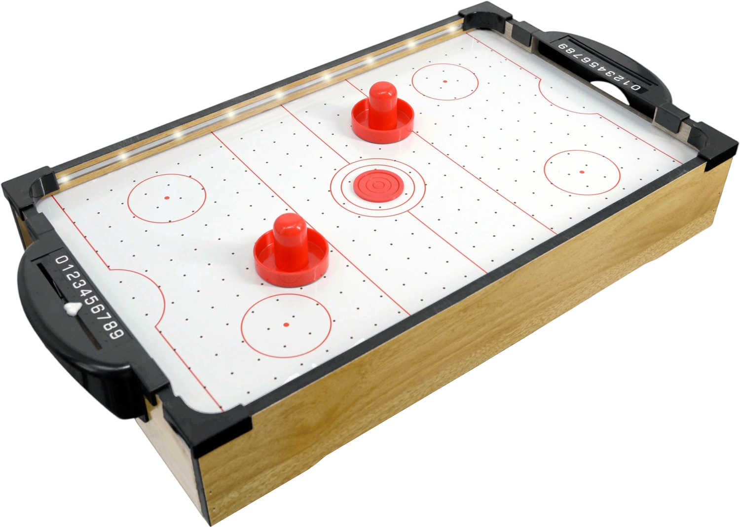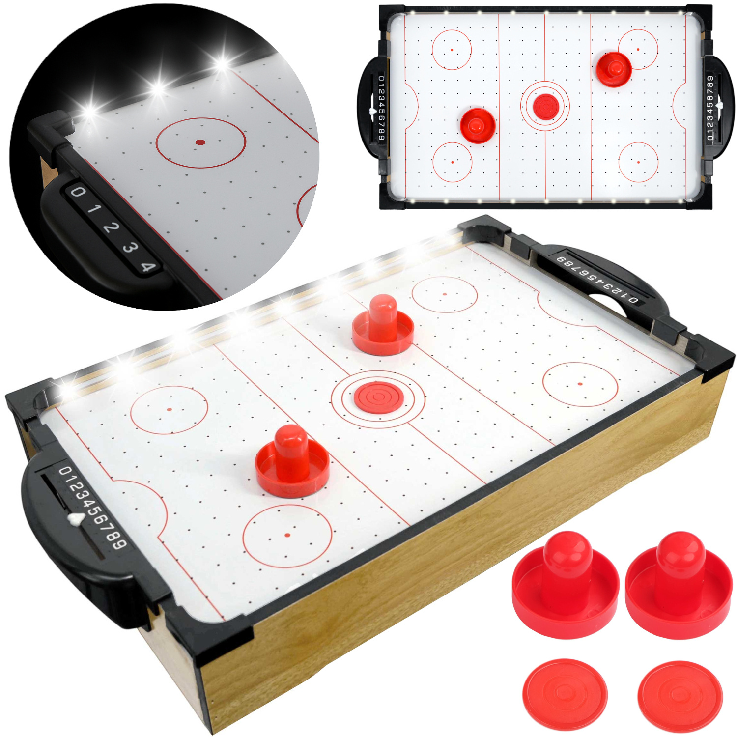 Air hockey to emocjonująca gra na zasadach klasycznego cymbergaja. Jest to dynamiczna i bardzo szybka rozgrywka, która dostarczy wszystkim entuzjastom mnóstwa dobrej i wesołej zabawy. Wciągająca zabawa, trenuje koncentrację i szybkość reakcji małych i dużych graczy.