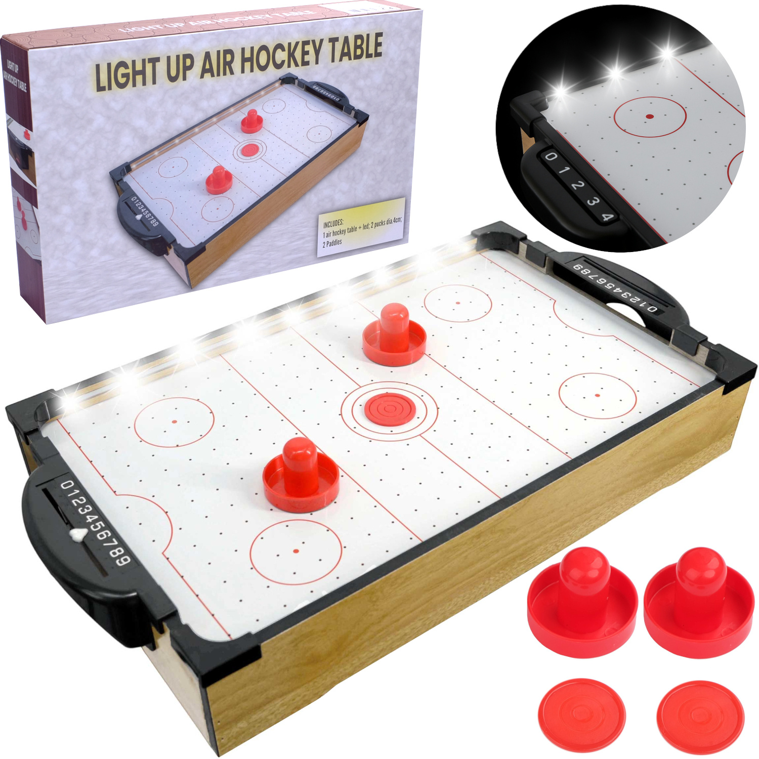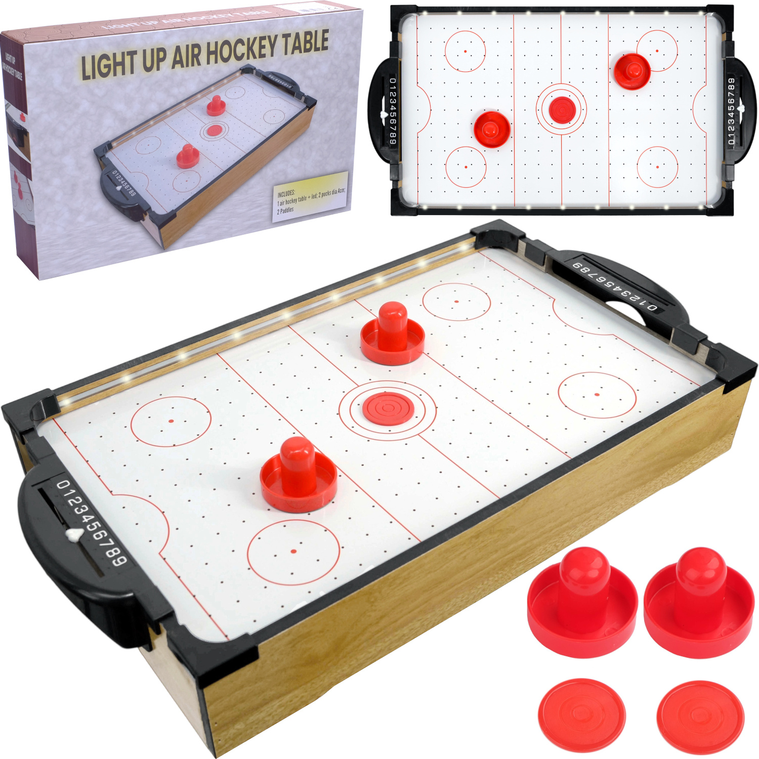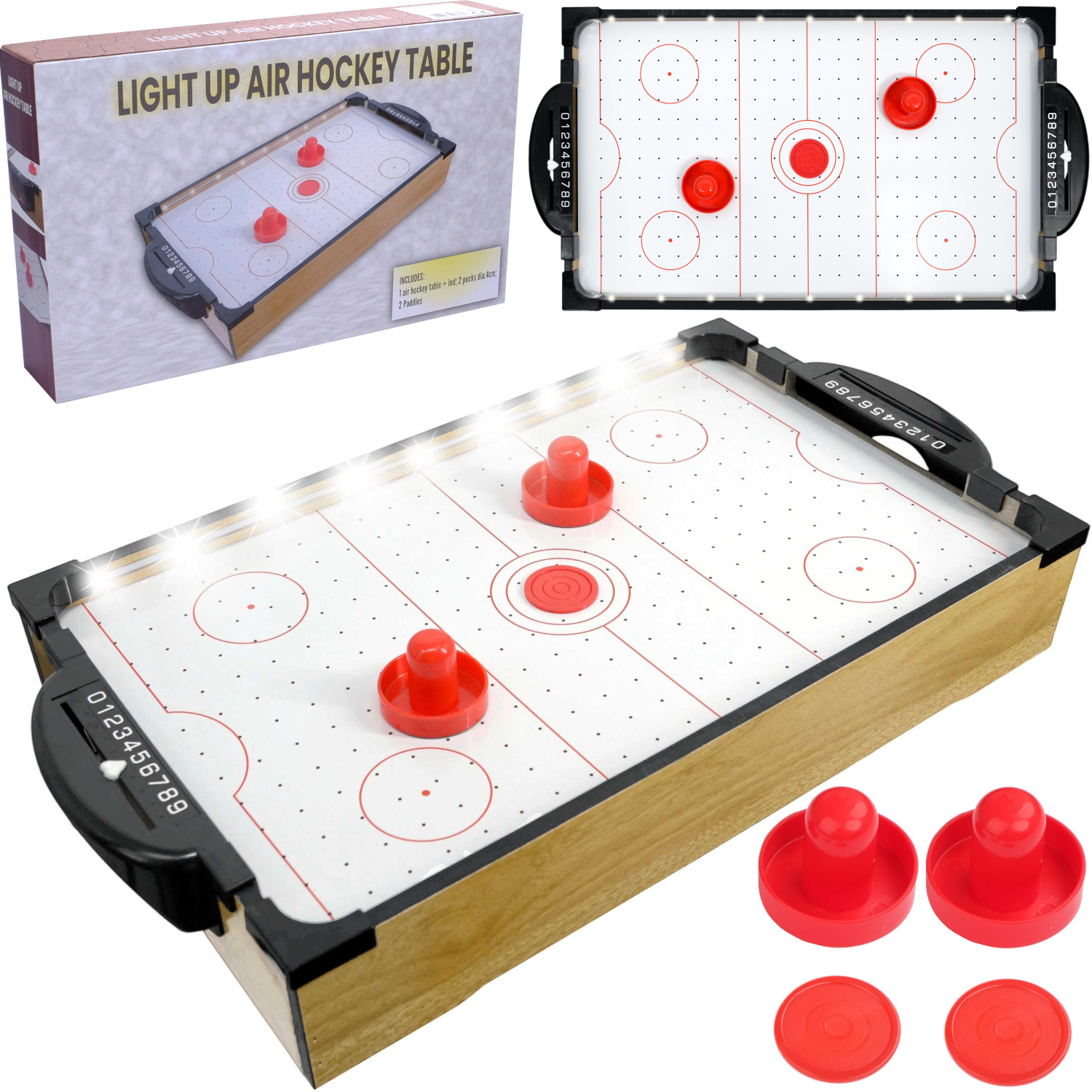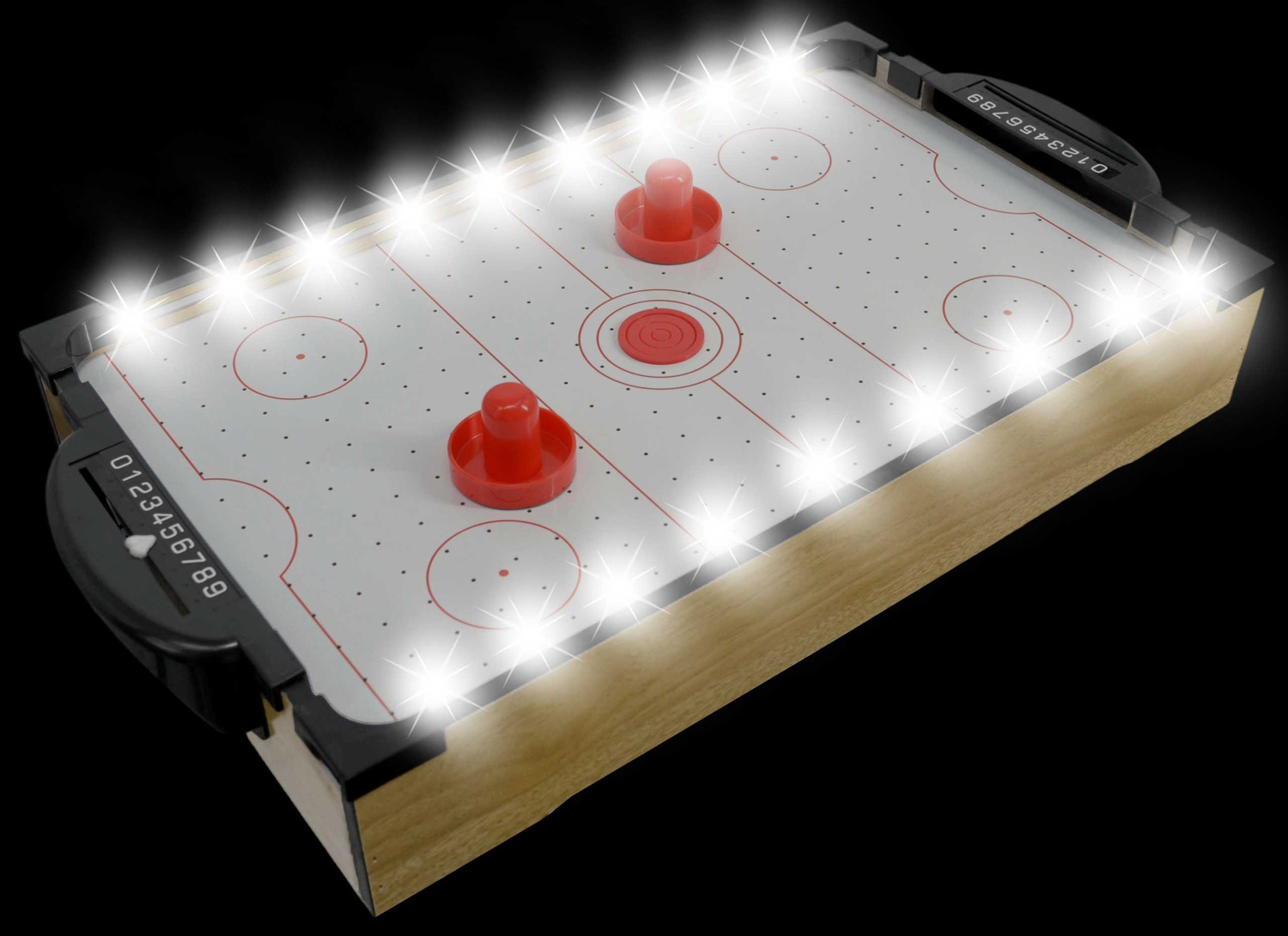 Air hockey to emocjonująca gra na zasadach klasycznego cymbergaja. Jest to dynamiczna i bardzo szybka rozgrywka, która dostarczy wszystkim entuzjastom mnóstwa dobrej i wesołej zabawy. Wciągająca zabawa, trenuje koncentrację i szybkość reakcji małych i dużych graczy.