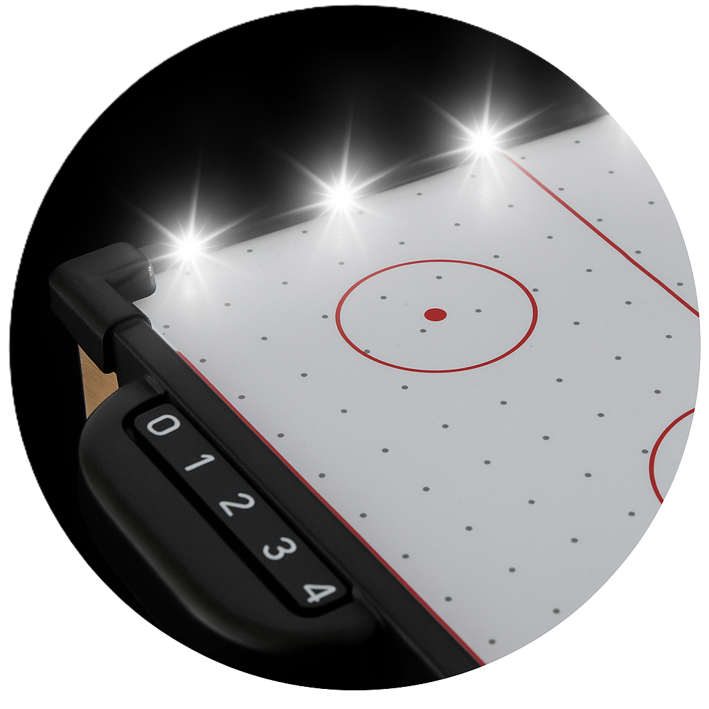 Powierzchnia stołu pokryta jest dużą ilością małych otworów, przez które wydmuchiwane jest powietrze z wentylatora umieszczonego pod spodem stołu. Powstaje poduszka powietrzna dzięki której krążek wręcz lata bez kontaktu z podłożem stołu. Tego typu rozwiązanie sprawia, iż czujemy się jak w trakcie rozgrywki hokejowej na prawdziwej tafli lodu. Dzięki systemowi poduszki powietrznej tempo gry jest dynamiczne i zawrotne.