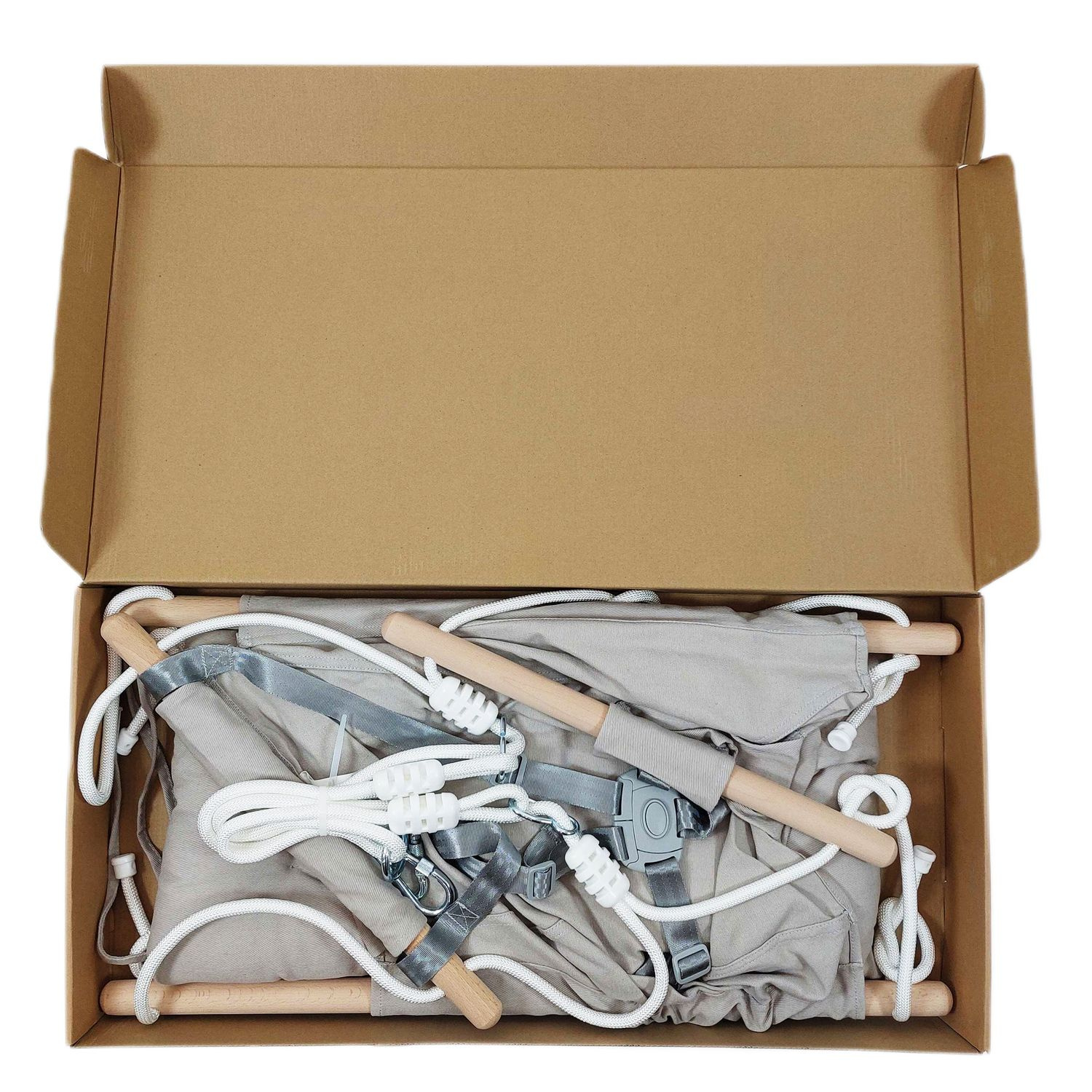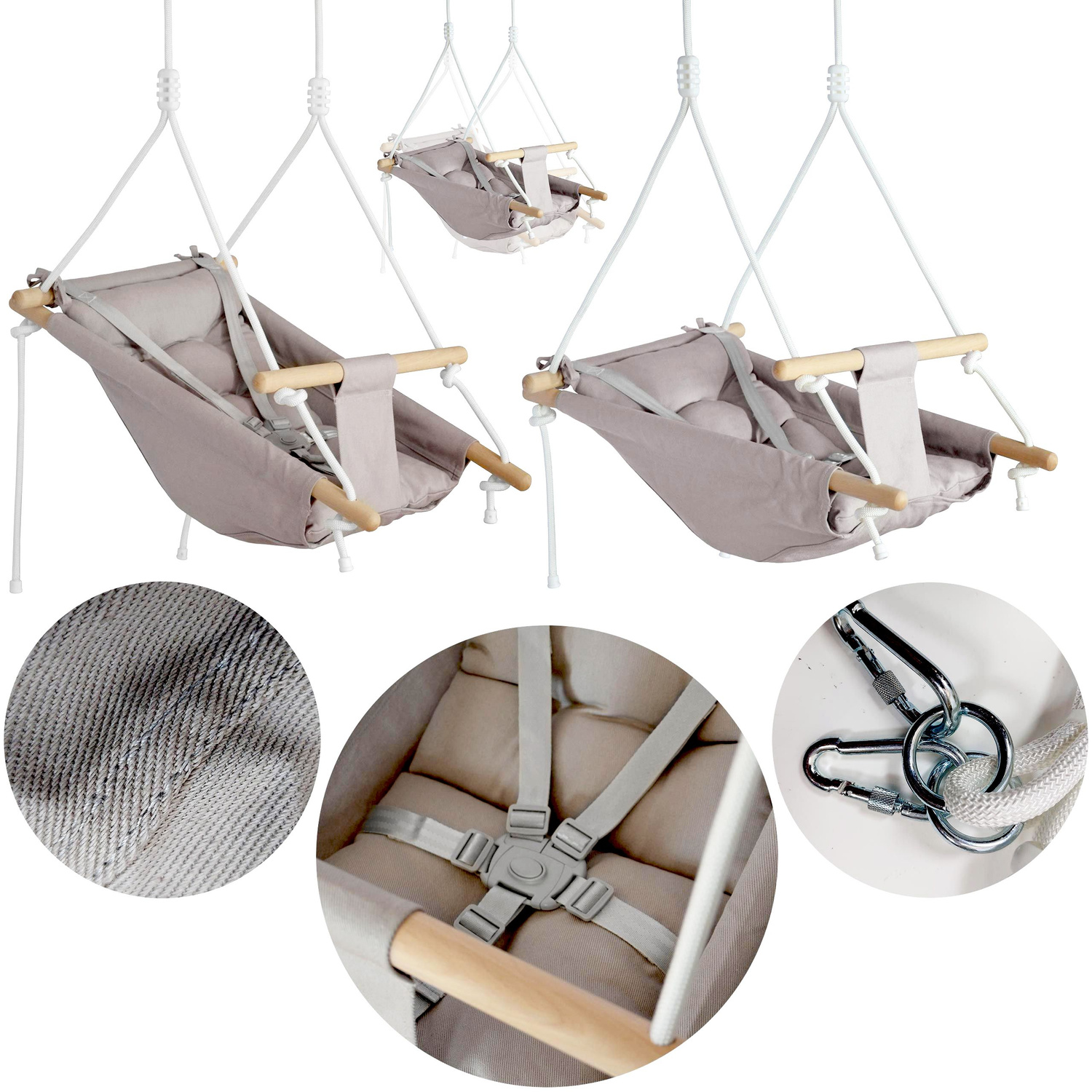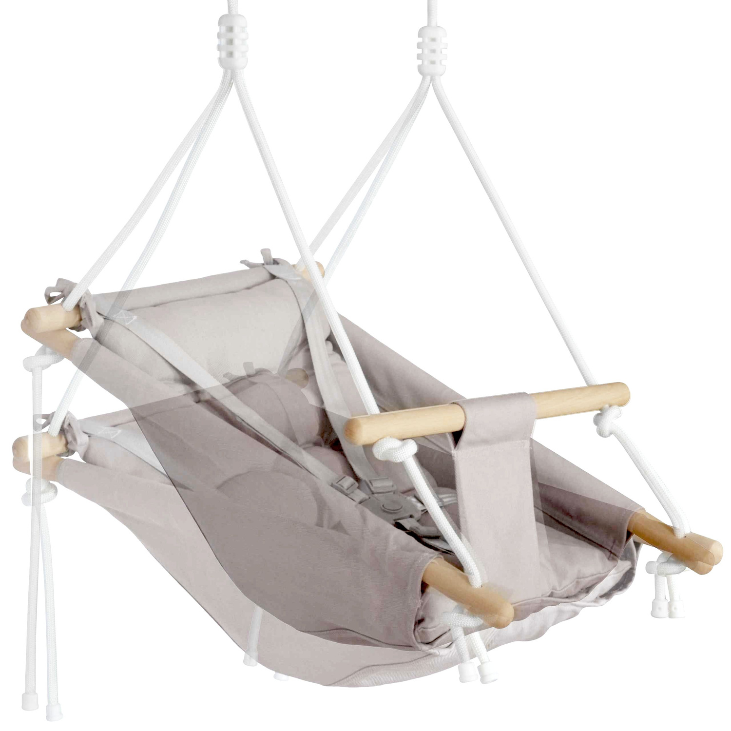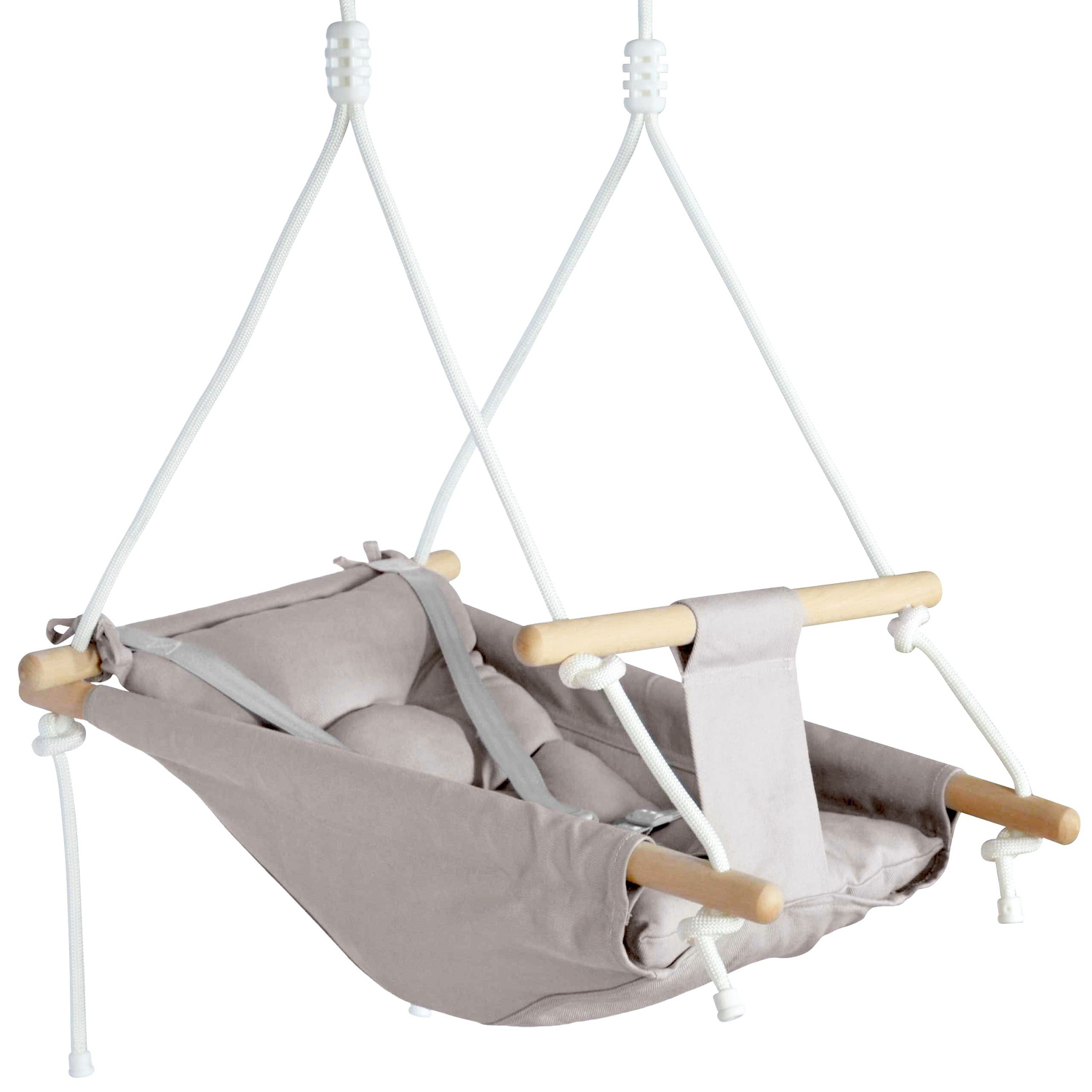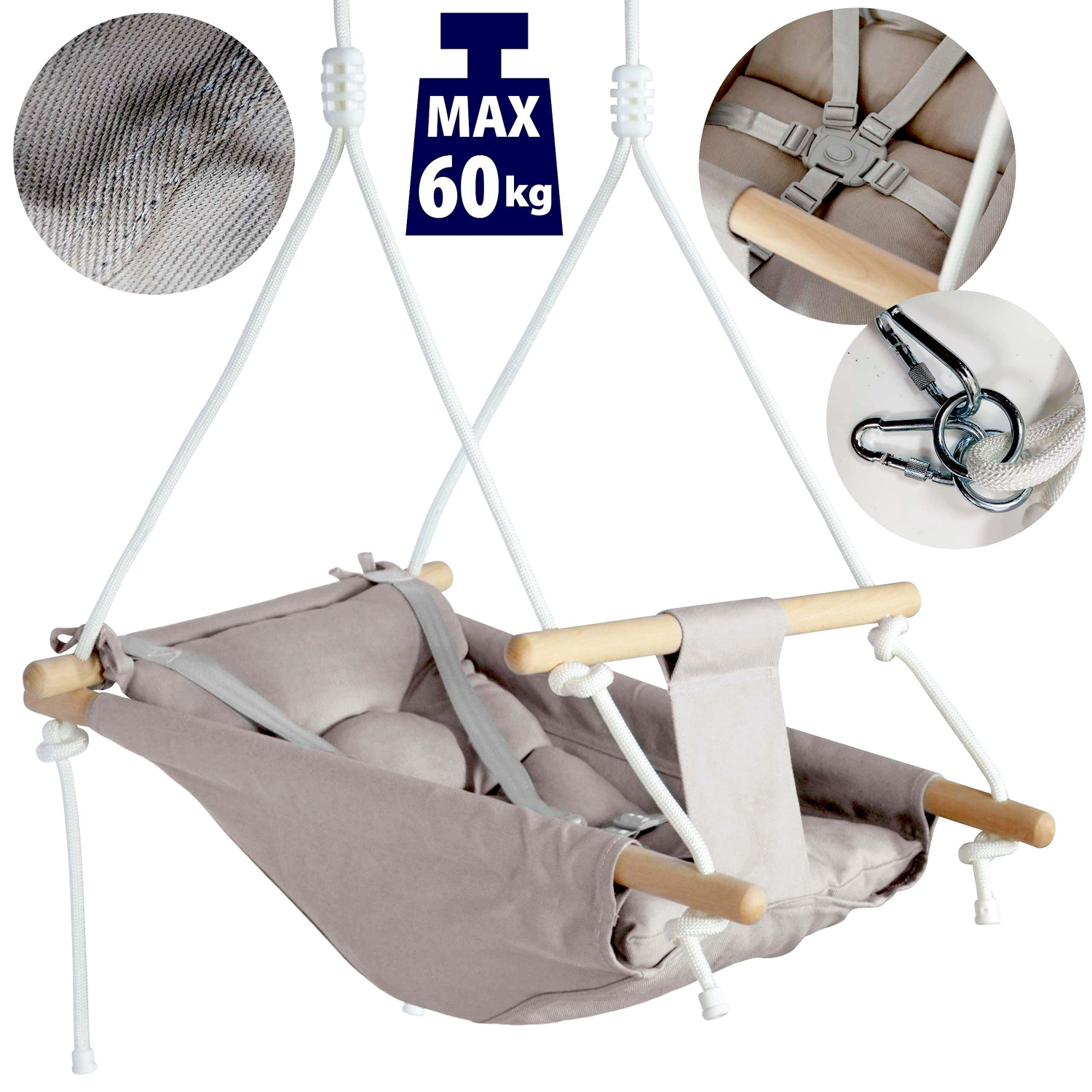 Wykonana z wysokiej jakości, wytrzymałego materiału w modnym, neutralnym kolorze, huśtawka idealnie wpasuje się do każdego wnętrza. Huśtawka jest gotowa do zawieszenia w domu lub w ogrodzie. Idealna jest dla dzieci w wieku od 6 do 36 miesięcy.