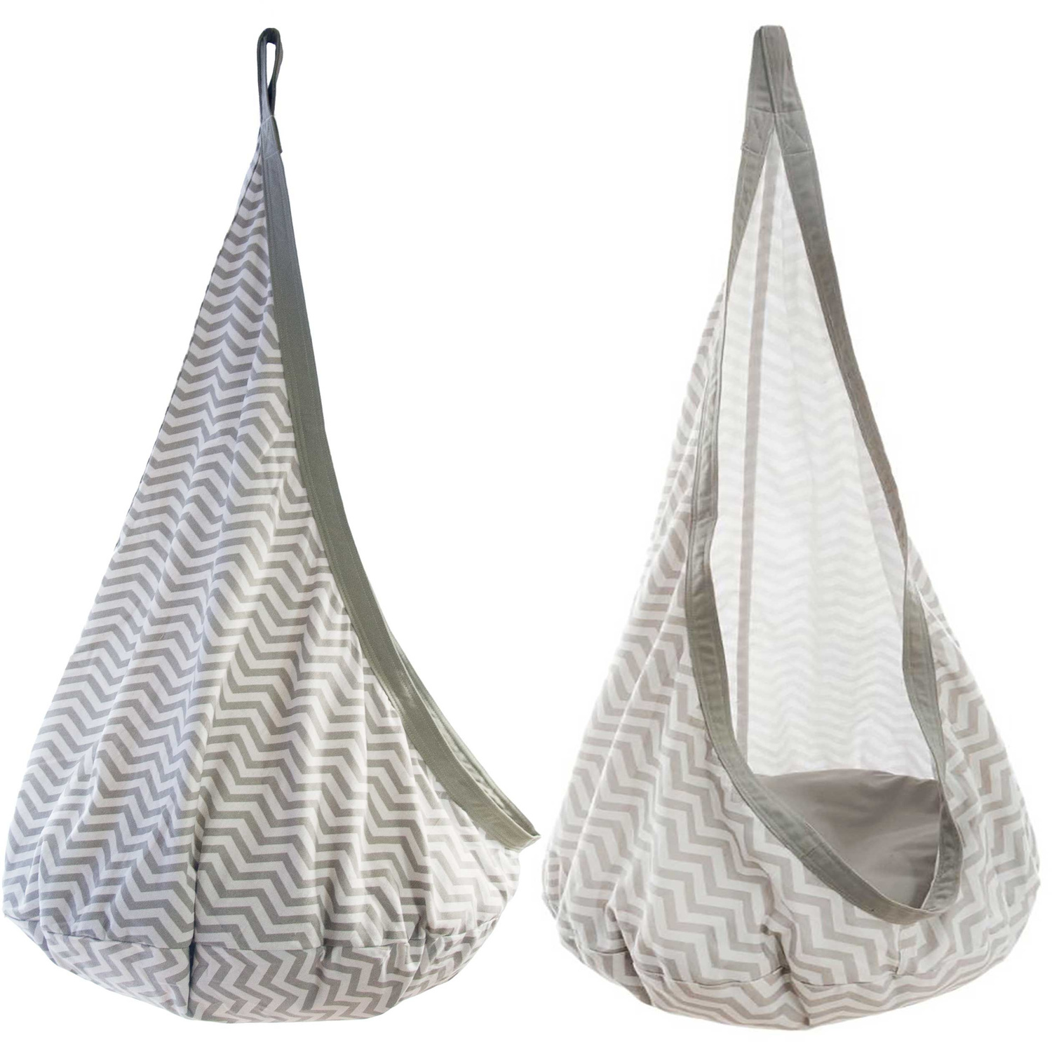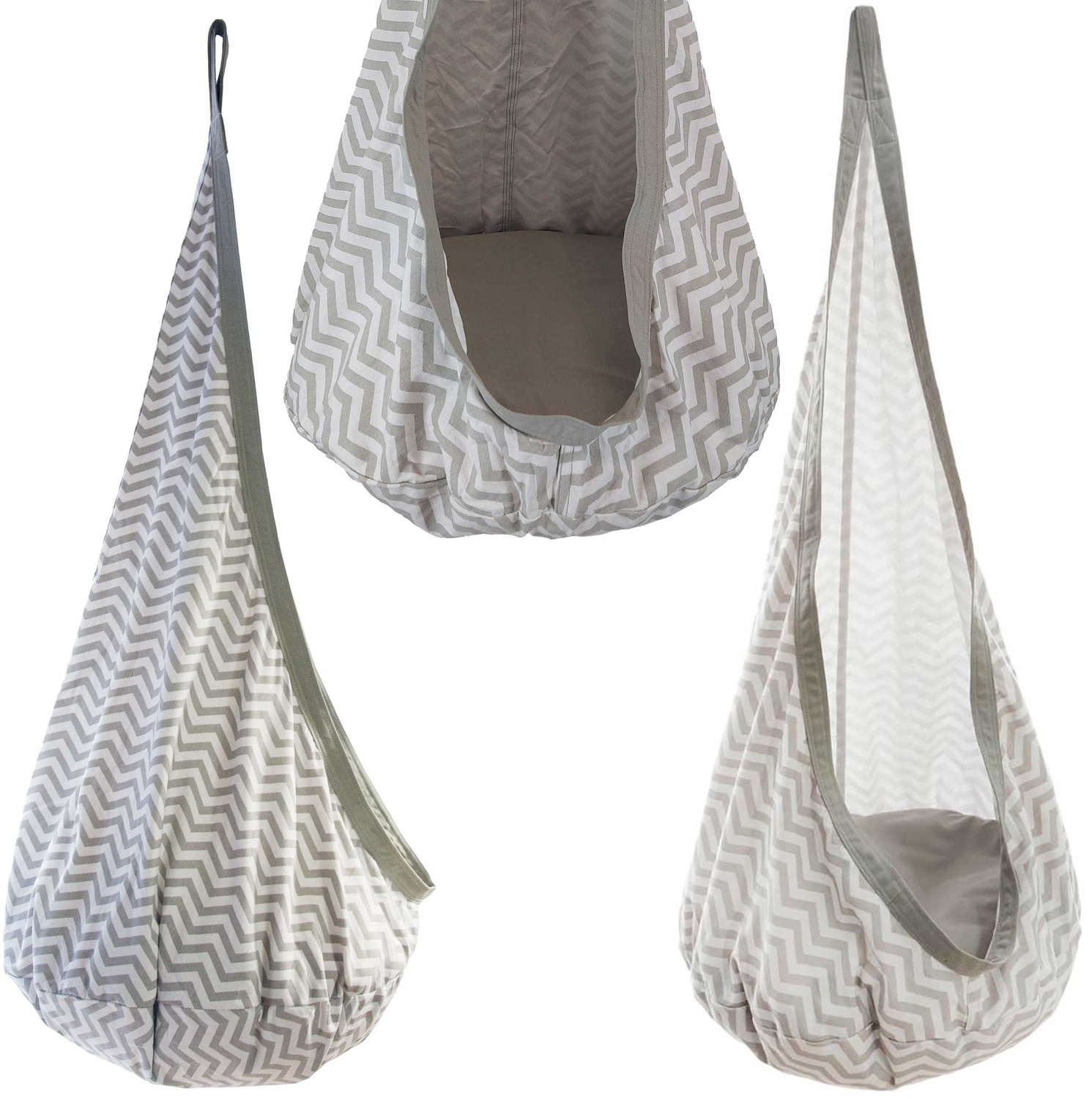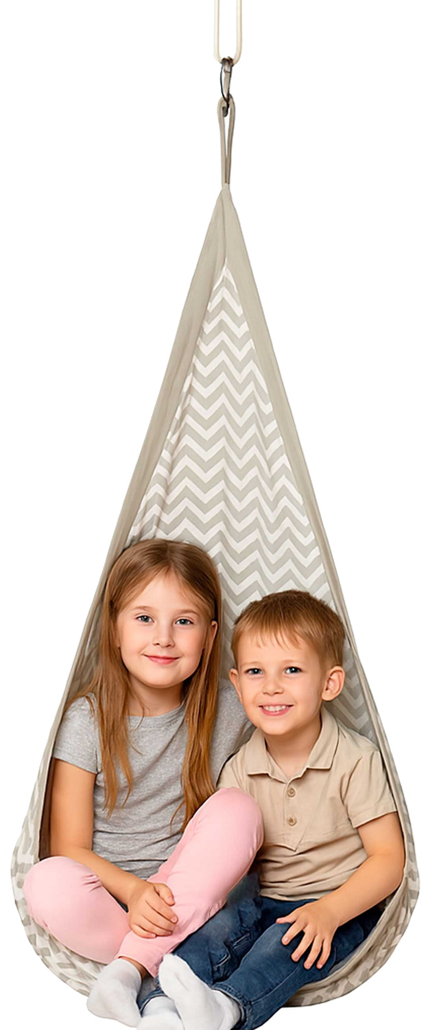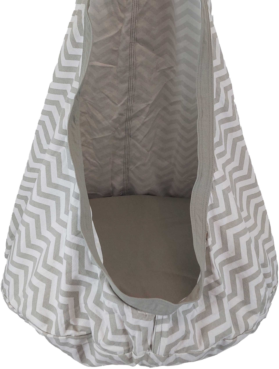 Zmień zwykły pokój lub ogród w plac zabaw, który pokocha Twoje dziecko! Kokon w eleganckim, biało szarym wzorze to idealne połączenie wygody i bezpieczeństwa. Huśtawka została zaprojektowana z myślą o najmłodszych – mocny materiał i solidny metalowy karabińczyk gwarantują stabilność i pewne mocowanie.