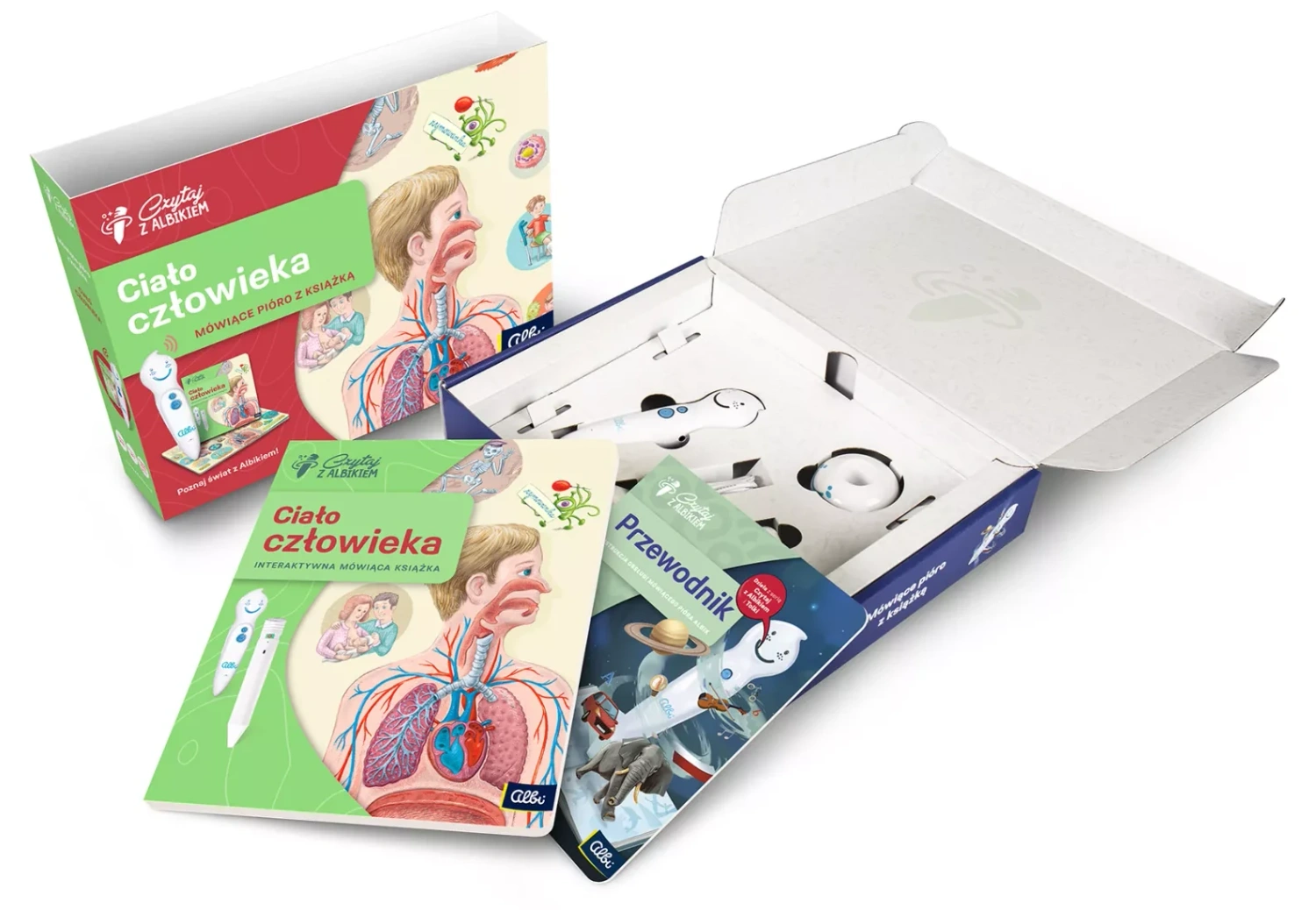 Czytaj z Albikiem to seria książek z mówiącym piórem. Pióro pozwala dzieciom odkryć treści zakodowane w książkach, zadaje zagadki, recytuje wierszyki i śpiewa. W książkach znajdują się setki informacji, każdy element graficzny książki przemawia do czytelnika. Dzięki darmowym aktualizacjom oprogramowania pióro będzie obsługiwało wszystkie nowości wydawnicze. Głosu użyczają zawodowi lektorzy. Mówiące pióro jest wyposażone w wysokiej jakości głośnik, 32 GB pamięci i odtwarzacz MP3.