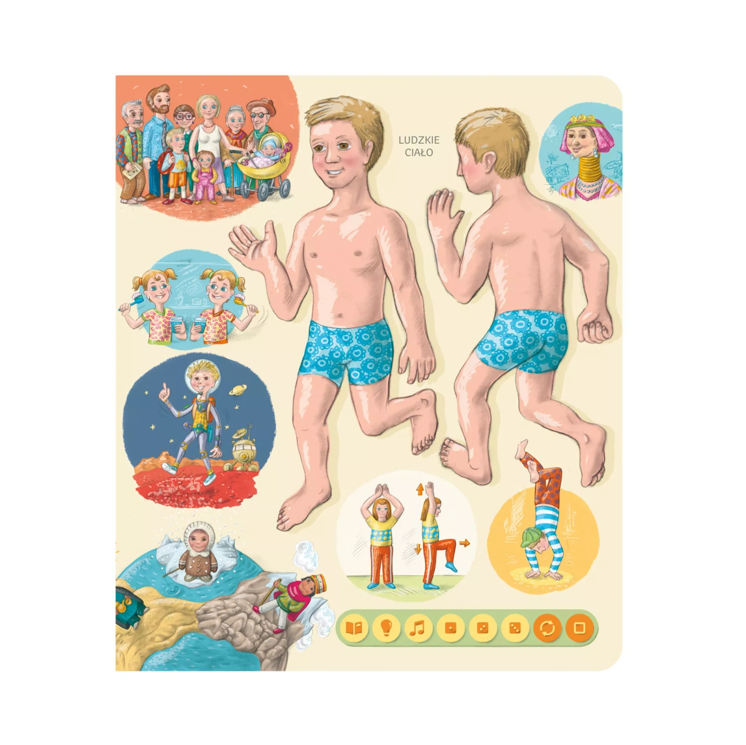 Poznasz takie tematy jak: Co zapewnia nam życie - serce i płuca, Układ trawienny, Ruch - kości i mięśnie, Twój mózg, Zmysły - postrzeganie świata, Jak powstaje życie, Walka z chorobami.