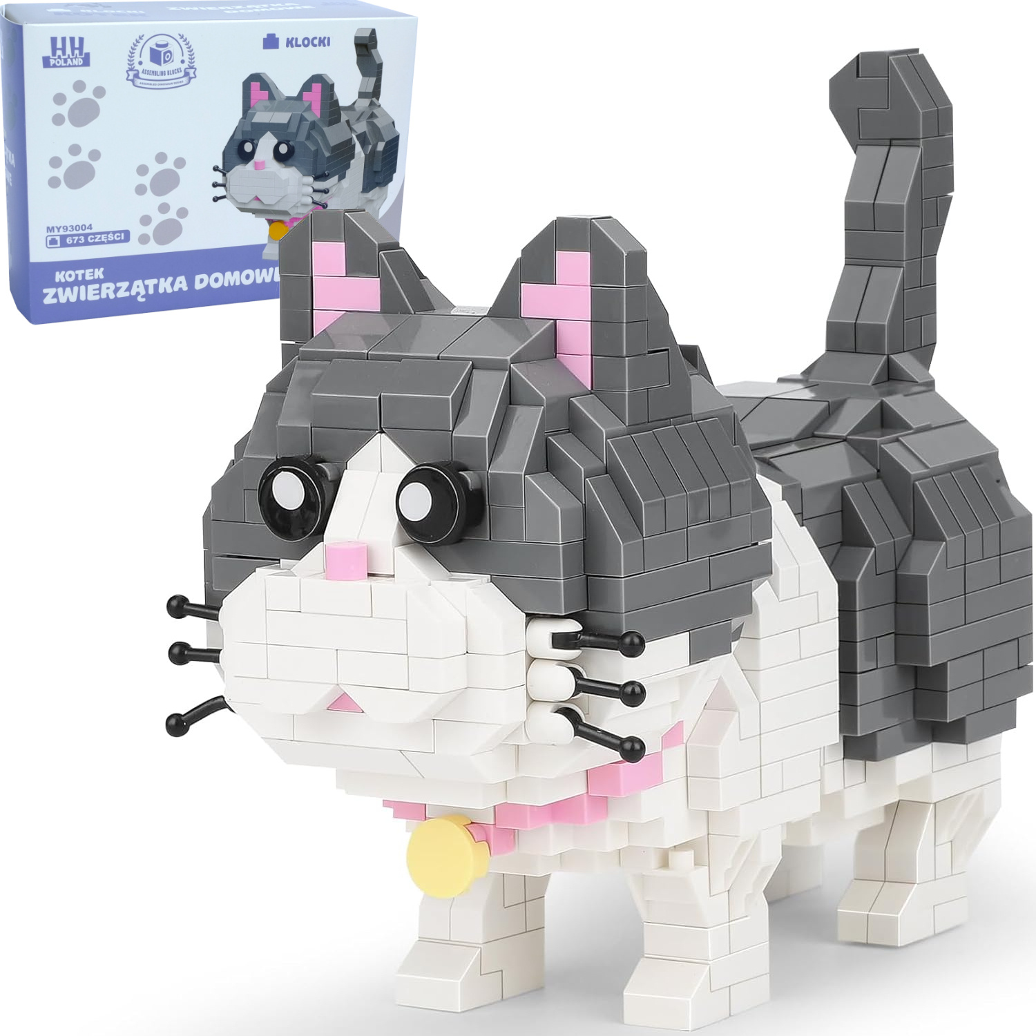 • Relacyjny zestaw klocków z których biało-szarego kotka. Zwierzątko domowe z klocków wygląda jak prawdziwe! Zestaw zawiera 673 elementów, dzięki czemu zapewnia wiele godzin wciągającej zabawy. Niesamowita gratka dla małych miłośników klocków oraz kotków.